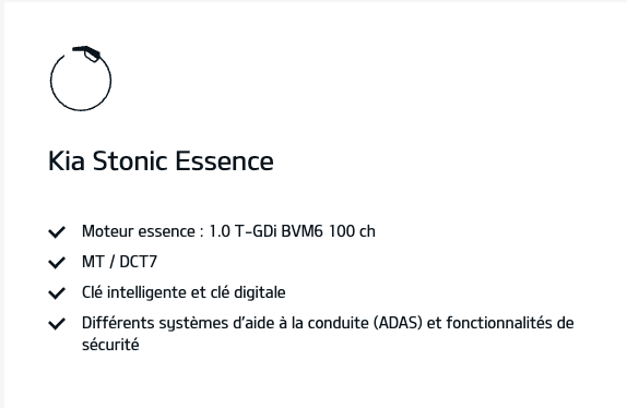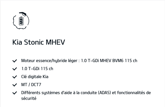 Les photos et vidéos présentées sont utilisées à des fins d’illustration uniquement. Le produit final peut présenter des différences par rapport aux images utilisées. Les modèles et spécifications présentés sur cette page peuvent différer des modèles disponibles sur le marché français. Veuillez contacter votre distributeur Kia pour obtenir les informations les plus récentes.